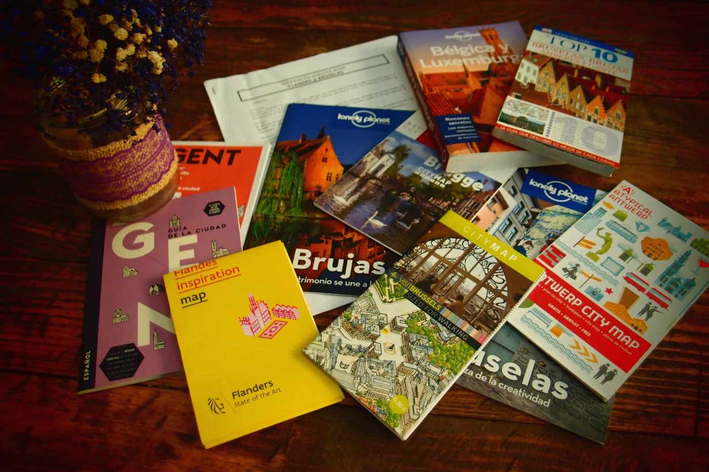 Como todo buen viaje es necesario documentarse bien. Para ello, compramos las guías de viaje de Top 10: Bruselas, Brujas, Amberes y Gante de la Editorial Aguilar y también la de Bélgica y Luxemburgo de Lonely Planet. Además, pedimos folletos sobre las diferentes ciudades a la web de Turismo de Flandes.