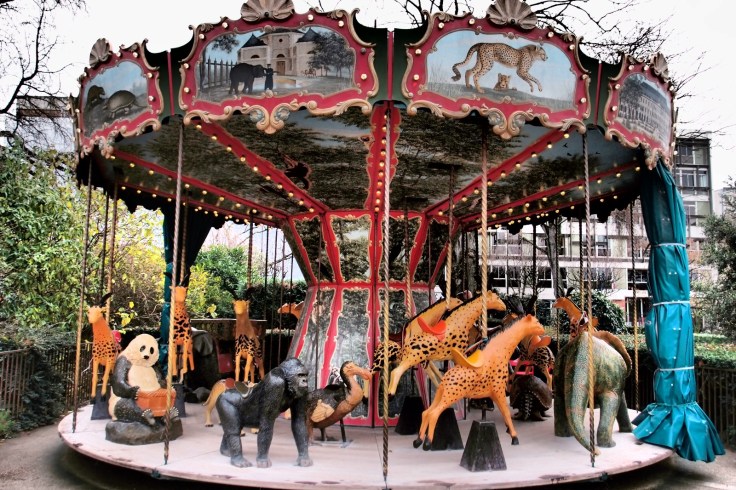 Al ser invierno los jardines no estaban tan bonitos cómo pueden estar en primavera o verano, pero a nosotros nos gustó mucho a pasear por aquí y descubrir lugares diferentes, como este carrusel. A Juan no le gustó nada de nada, sin embargo a Sara le parece que transmite mucha nostalgia.