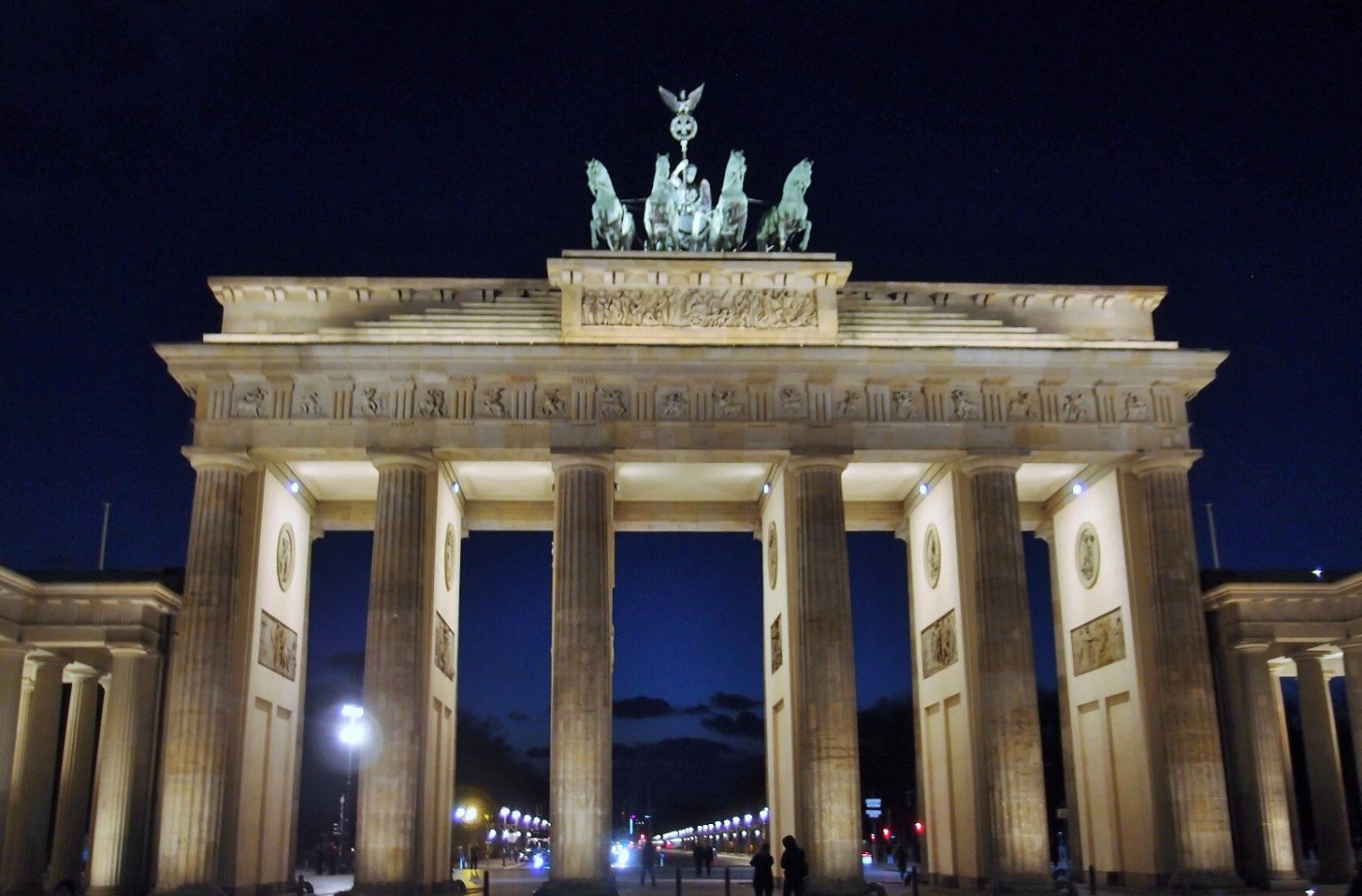 Antes de irnos a cenar algo, decidimos pasear hasta la Puerta de Brandenburgo y verla iluminada. ¡Nos pareció mucho más bonita así que de día!
