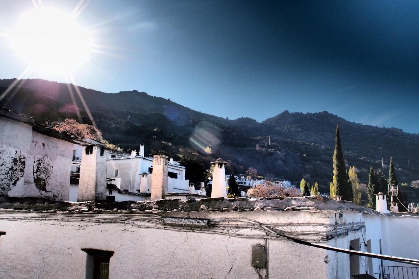 La verdad es que esta zona fue la que más nos gustó de toda la Alpujarra, sus calles estrechas y empinadas, sus terraos (tejados planos) con las chimeneas rematadas con un sombrero, así como los tinaos, que son voladizos que suelen cubrir toda la calle de forma que te puedas proteger del tiempo.