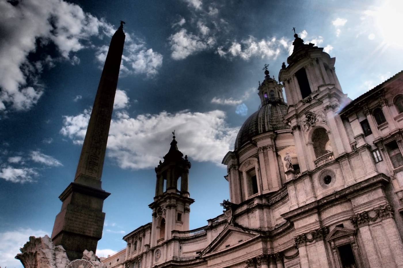 Antiguamente esta plaza alargada y de estilo barroco fue el circo de Domiciano, del s.I, de ahí que aún conserve la forma original. En la plaza se pueden contemplar 3 fuentes la Fuente de Neptuno, la Fuente del Moro, y por último y más importante la Fuente de los Cuatro Ríos, construida en el s.XVII por Bernini y que representa los 4 ríos, Nilo, Danubio, Ganges y Río de la Plata, es decir los 4 continentes que se conocían por entonces. Justo detrás de esta fuente se encuentra la Chiesa di Sant’Agnese in Agone, cuya fachada es de Borromini.