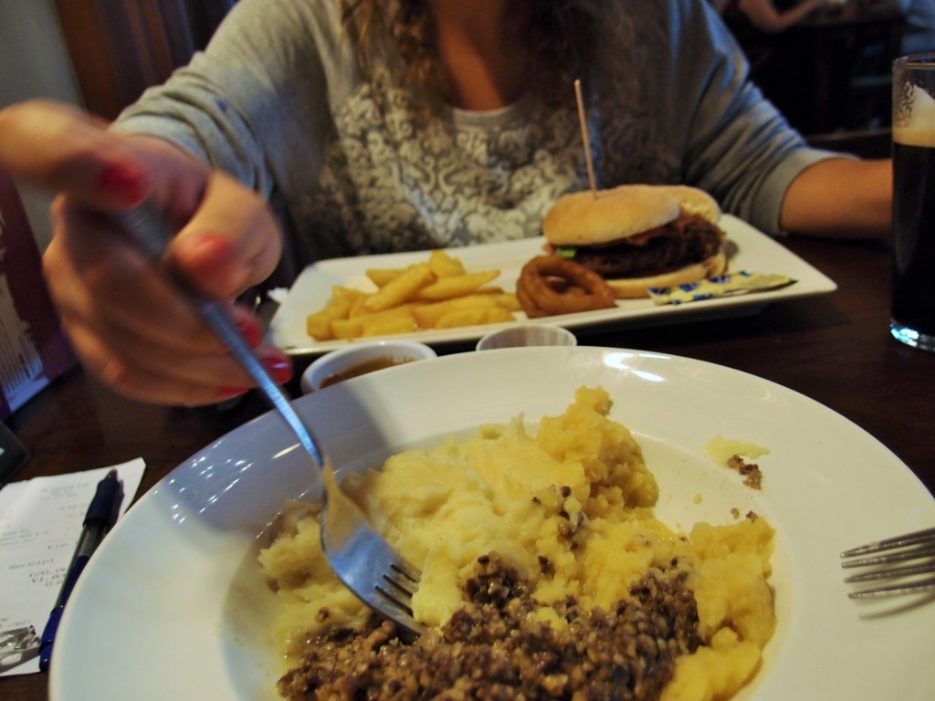 - The Standing Order: Este lugar nos lo recomendó en nuestro primer viaje nuestra guía del tour y no nos pudo gustar más. Anteriormente era una sede bancaria y su interior es increíble y además puedes beber una buena pinta mientras degustas buena comida a muy buen precio. Nosotros comimos hamburguesa y probamos los haggis.