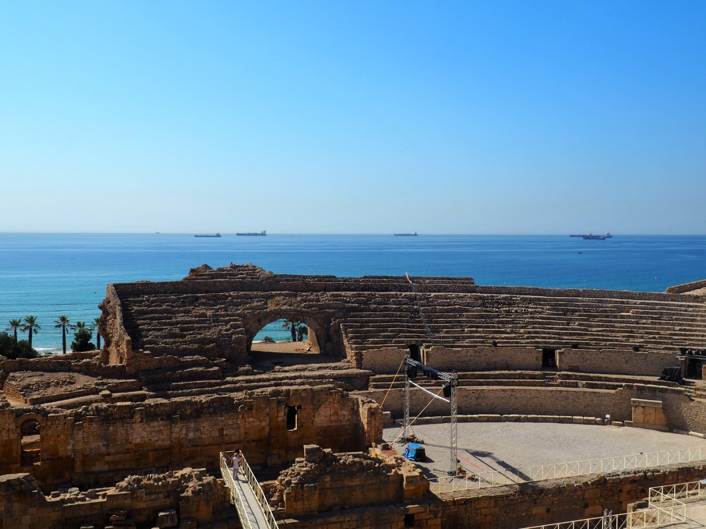Si bien es cierto, no hace falta comprar la entrada para poder tener una de las mejores vistas de la ciudad: el anfiteatro con el mar de fondo, desde el Parque del Anfiteatro.