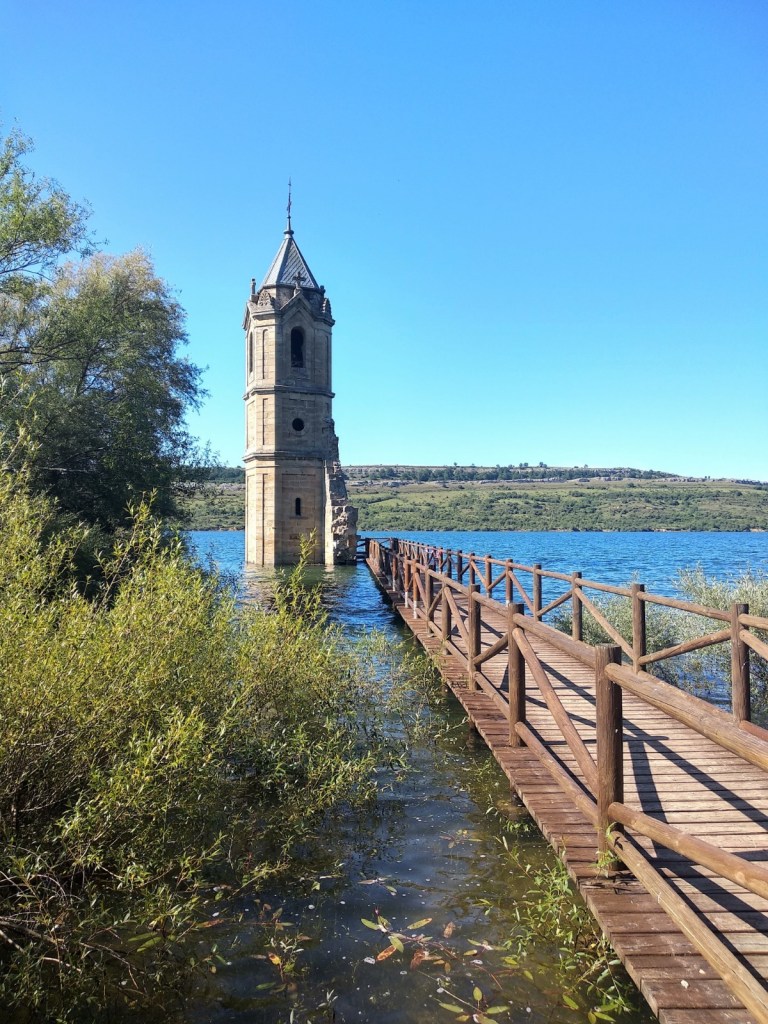 De nuevo en la ribera del pantano se encuentra la Catedral de los Peces, que se trata de la torre campanario de la antigua iglesia del pueblo Villanueva de las Rozas que está sumergido bajo el pantano. Si quieres puedes subir a lo alto para obtener unas vistas privilegiadas del embalse.