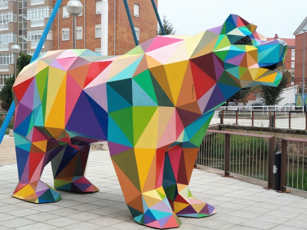 Si te gusta el arte urbano que sepas que Okuda, el famoso artista cántabro, dejó aquí su huella con la escultura de un oso.