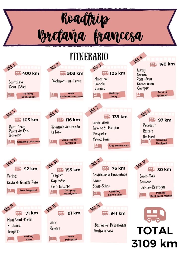 En esta entrada te contamos cuál fue nuestra ruta en autocaravana por la Bretaña francesa, explicando la organización por días así como lo que visitamos cada día y todo lo que necesitas saber para poder organizar tu viaje a esta maravillosa zona de Francia, así que ya sabes coge papel y lápiz y ¡sigue leyendo!