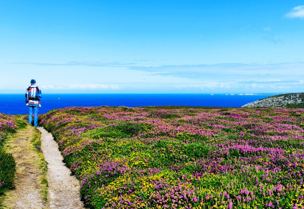 Tras el chasco y el enfado correspondiente, nos dirigimos hacia Cap Fréhel, los colores de este cabo son impresionantes: morado y amarillo se funden con el azul del mar. Disfruta de su paisaje a través de un paseo hasta el faro, construido en la década de los 40, si viajas en verano incluso podrás visitar su interior.