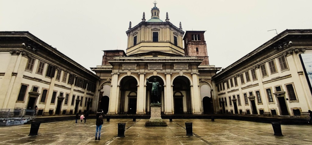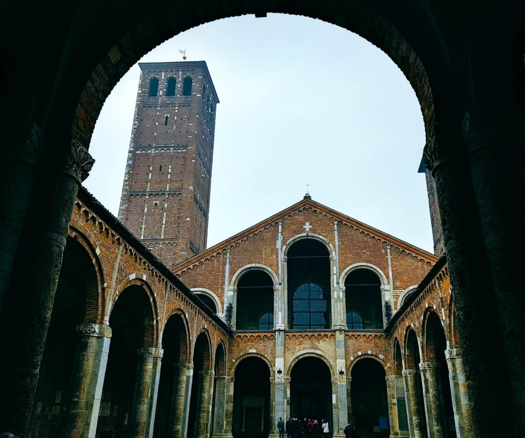 Nuestro siguiente imprescindible para visitar en Milán es la Basílica de San Ambrosio, una de las iglesias que más sorprendió durante nuestra escapada ¿por qué? Porque se trata de uno de los edificios más antiguos de Milán ya que data del s. IV aunque también por su exterior, con dos grandes torres de ladrillo que enmarcan la fachada y su patio central con restos arqueológicos. Y es que esta iglesia fue reconstruida en el s. XI utilizando el estilo románico lombardo, hasta entonces desconocido y que fue la referencia para las futuras iglesias del mismo estilo.