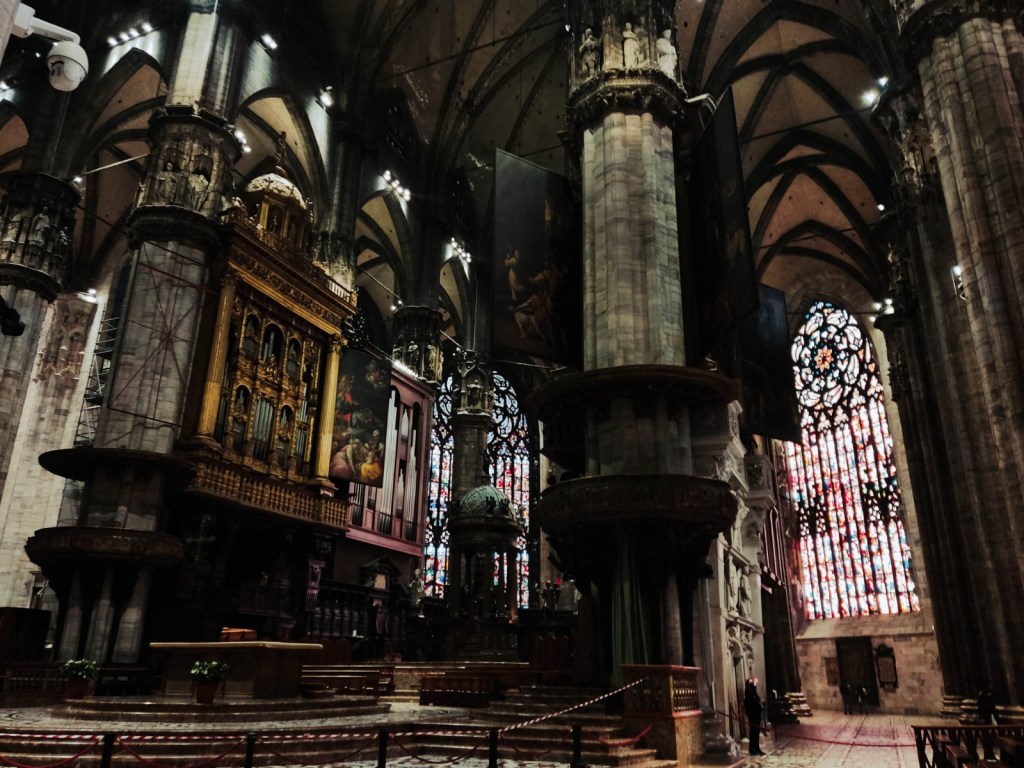 Si por fuera es impresionante, su interior tampoco te dejará indiferente, 52 columnas separan las cinco naves que conforman la Catedral, además vas a poder la estatua de Bartolomé el Apóstol, una de las vidrieras más grandes así como un altar de mármol de estilo renacentista, tras el cual se guarda uno de los tesoros de la catedral, un Clavo de la Cruz de Cristo. También se puede visitar la cripta y el tesoro, aunque personalmente no nos llamó mucho la atención. En el baptisterio se encuentra un área arqueológica dónde se muestra los restos de las basílicas que te comentábamos antes.
