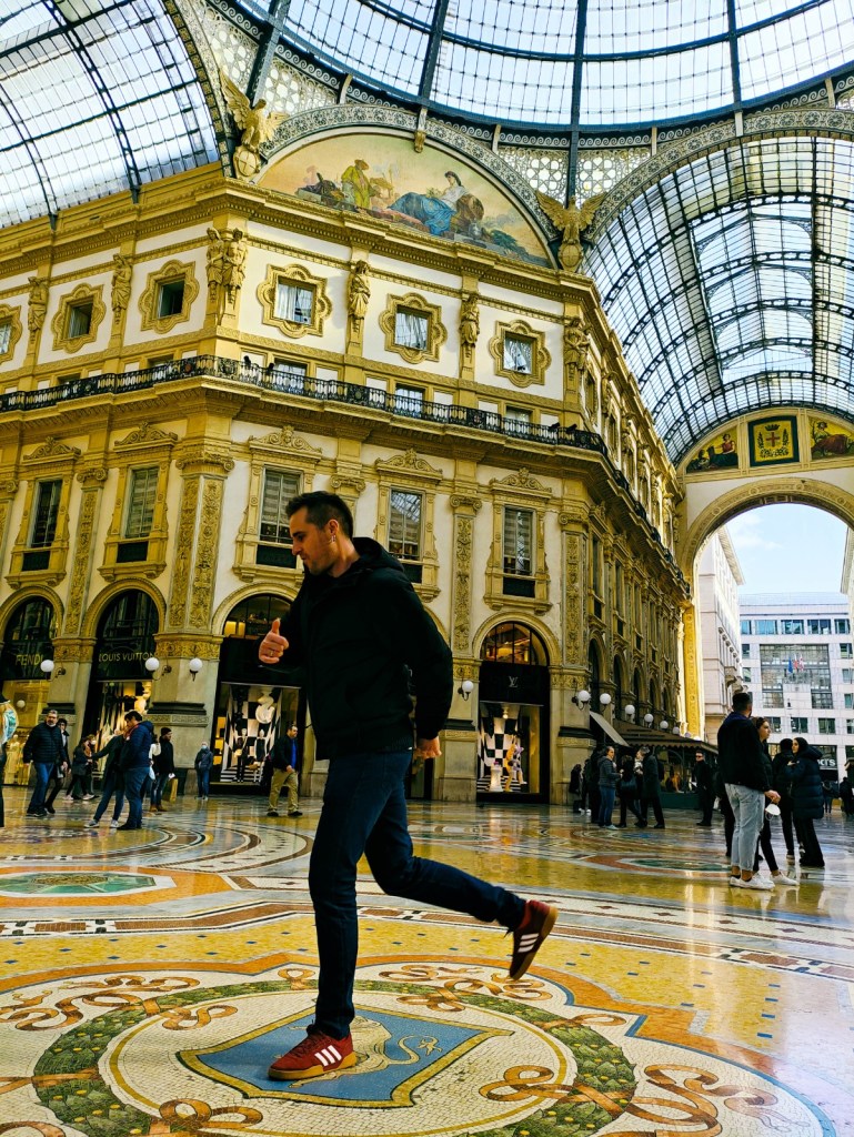 Aunque a nosotros lo que más nos llamó la atención fue la gran cúpula acristalada que se encuentra en el centro y los diferentes mosaicos que decoran el suelo. Entre tanta belleza seguro que no sabes ni a dónde mirar. Si hay un mosaico que llama la atención de todos es el escudo de la familia Savoia, también conocido como el mosaico del toro. ¿Por qué es tan famoso? Pues dice la tradición y, como no, también la leyenda, que si giras tres veces con tu talón derecho sobre los…digamos atributos del toro, tendrás buena suerte. Como no, teníamos que intentarlo.