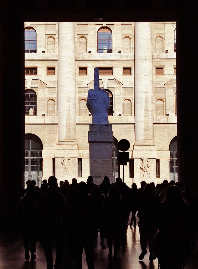 Muy cerca de la Pinacoteca, frente a la Bolsa de Milán, se encuentra la escultura de mármol L.O.V.E, también conocida como Il Dito, el dedo más famoso de Milán. Aunque su nombre es L.O.V.E, que no te engañe nada tiene que ver con el amor, sino que es un acrónimo de Libertad, Odio, Venganza, Eternidad.