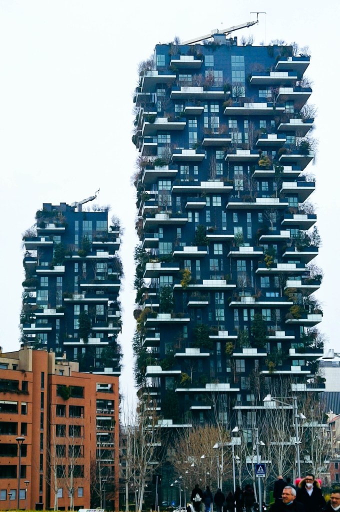 En la zona moderna de Milán, muy cerca de la Piazza Gae Aulenti, inaugurada en de estilo futurista, se encuentra uno de los rascacielos más famosos y fotogénicos de Milán, Il Bosco Verticale. En realidad son dos edificios recubiertos de una gran variedad de especies de arboles, plantas y arbustos, aproximadamente 2000 tipos ¡ahí es nada! No creas que son unos edificios aptos para cualquier bolsillo, nuestro guía nos contó que en ellos viven algunos de los personajes más famosos y ricos de la ciudad.