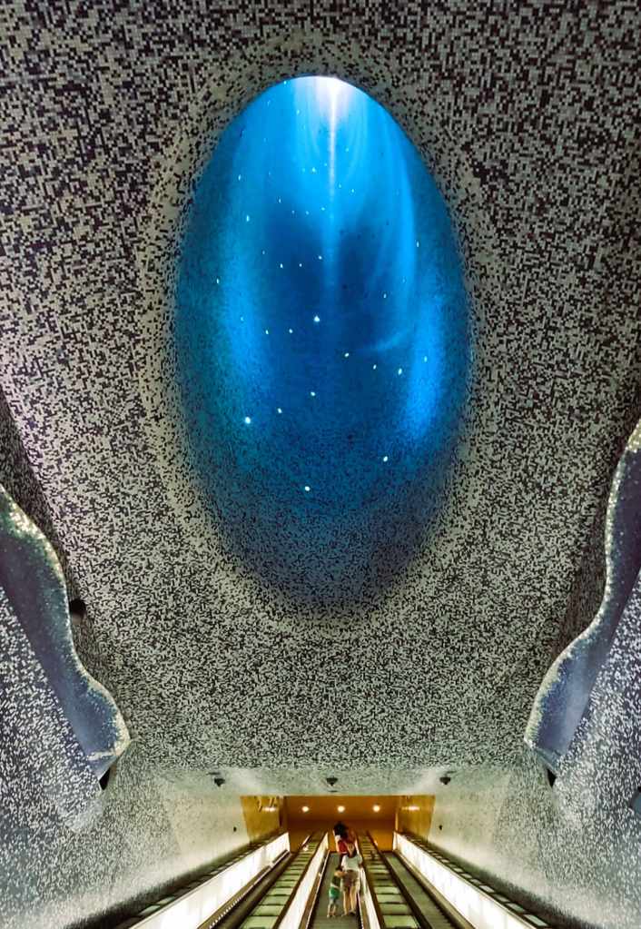 Seguro que has leído o has visto alguna imagen sobre el metro de Nápoles, en especial la Línea 1, conocida como la línea del arte. Y es que esta línea de metro más bien parece un museo porque tiene estaciones decoradas por artistas internacionales. Algunas de las que más nos gustaron fueron la estación de Toledo con una temática marina. También nos gustó el diseño futurista de la estación de Universitá. Otra de las estaciones que destaca es la de Garibaldi, aunque nos gustaron mucho más las otras.