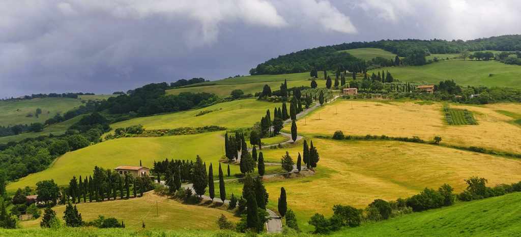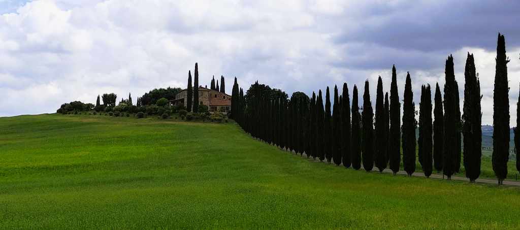 Nos adentramos después en el Valle d’Orcia de camino a nuestro siguiente destino. Fue una maravilla de trayecto, y nos paramos un montón de veces para poder admirar el paisaje y sacar miles de fotos. Y es que este valle es Patrimonio de la Humanidad por la UNESCO, famoso por sus vistas de ensueño, que han inspirado a fotógrafos y cineastas. Si has visto Gladiator, seguro que sabes de lo que te hablamos.