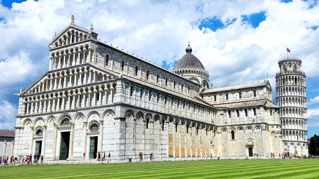 Después de despertar en Lucca, pusimos rumbo a nuestra última parada del viaje: Pisa. Ya habíamos estado hace años, pero queríamos volver para disfrutarla de nuevo. El trayecto fue corto, así que llegamos con tiempo para disfrutar sin prisas. Aparcamos y caminamos hacia la Piazza dei Miracoli, ese lugar que nunca deja de impresionar. La torre, el Duomo, el Baptisterio… todo sigue igual de majestuoso, pero esta vez lo vivimos a través de los ojos de Neco, que no podía creer que una torre así no se cayera.