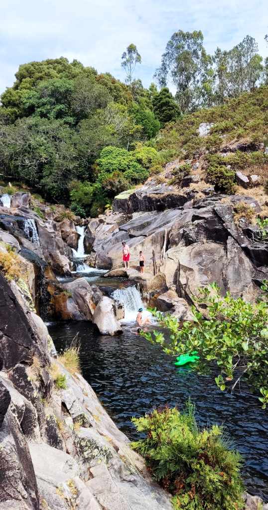 Por la tarde nos fuimos hacia el interior, a Caldeiras do Castro. El entorno de cascadas y pozas naturales es una maravilla. Nos dimos un baño espectacular en sus aguas cristalinas; fue la mejor forma de desconectar y disfrutar de la naturaleza gallega en estado puro.