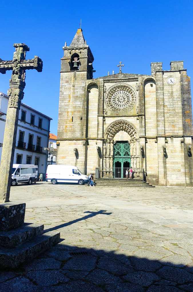 Por la tarde, seguimos uestra ruta hacia Noia, la «Portus Apostoli». También dedicamos la tarde a pasear tranquilamente por su casco antiguo, que tiene una elegancia medieval increíble. Nos detuvimos en la Iglesia de San Martiño, en la plaza principal, y nos llamó mucho la atención que solo tiene una torre terminada (¡dicen que terminar la segunda trae mal de ojo!).