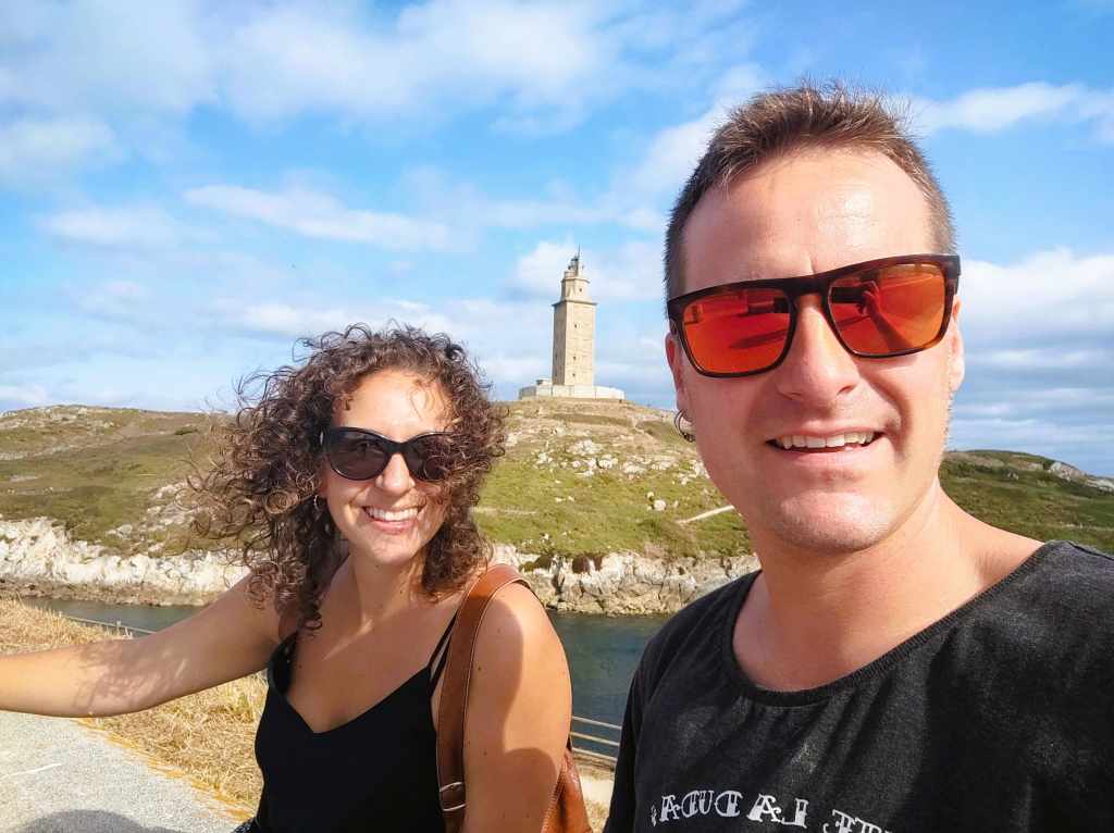 A media tarde, nos dirigimos a A Coruña. Aparcamos la autocaravana en el Aparcadoiro Aquarium Finisterrae dónde pernoctamos y como está muy cerca de la Torre de Hércules, nos fuimos a dar el primer paseo por la ciudad. El viento soplaba, por lo que no pudimos subir a la parte superior por seguridad, pero el paseo por el Parque Escultórico (viendo la Rosa de los Vientos y los Menhires) fue espectacular. Ver el mar romper contra los acantilados con esa intensidad te hace sentir muy pequeño.