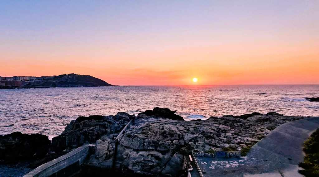 Fue un paseo muy relajante antes de dejar la costa definitivamente. Acabamos el día en Santiago de Compostela, al llegar fuimos directos al mirador del Paseo de la Herradura justo a tiempo para ver el atardecer desde allí. Es, sin duda, la mejor postal de Santiago.