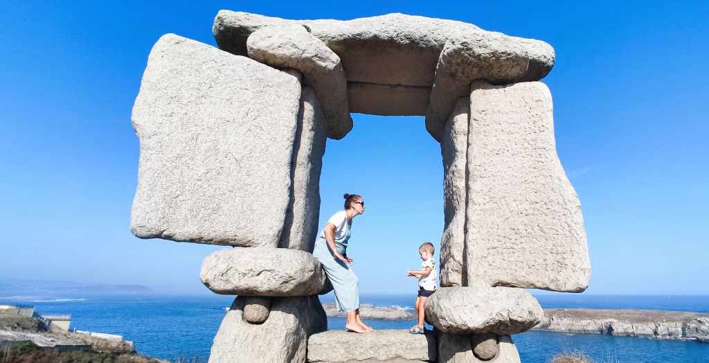 Dejamos atrás la comodidad de A Coruña para adentrarnos en la verdadera esencia de la Costa da Morte. Nuestra primera parada fue para disfrutar del Mirador Ventana al Atlántico, situado en el entorno de O Portiño, este lugar es mágico. Es una escultura de piedra en forma de ventana circular que encuadra perfectamente el horizonte y las Islas de San Pedro. Estar allí, asomados a ese «agujero» de piedra con el azul intenso del mar de fondo, fue el prólogo perfecto para lo que nos esperaba. Es una foto imprescindible y un sitio de una paz increíble antes de seguir la ruta.
