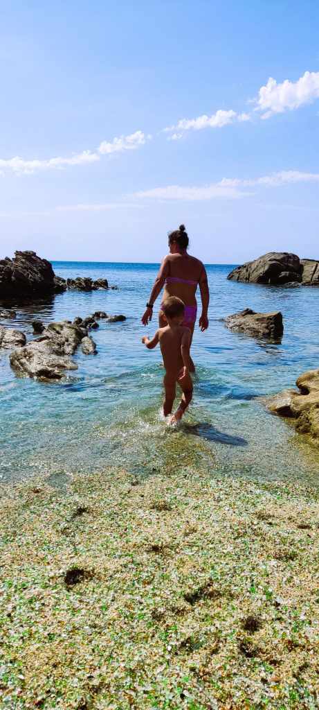 La tarde la pasamos en la Playa de los Cristales, esta playa es famosa por sus pequeños cristales pulidos por el mar, pero lo que hizo nuestra visita inolvidable no fue solo su singularidad. Lo mejor fue que estuvimos muchísimo tiempo allí, casi solos, disfrutando de ella con total tranquilidad. ¡Un auténtico lujo!