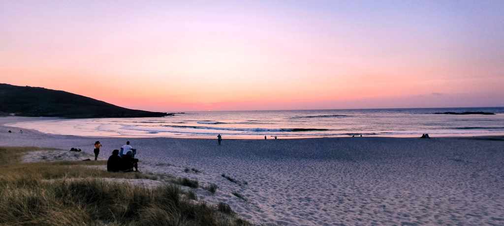 Para acabar el día nos acercamos a la Playa de Soesto, un paraíso virgen y salvaje. Es el lugar perfecto para pernoctar con la autocaravana; allí, rodeados de dunas y con el sonido constante del Atlántico, vimos cómo se ocultaba el sol en uno de los atardeceres más bonitos del viaje.