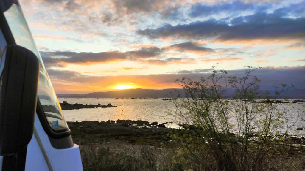 - Illa de Arousa: Pernoctamos en este cómodo parking a pie de playa con unas vistas increíbles a la ría. Un sitio estratégico para explorar la isla. Eso sí hacerte con un sitio cuesta, cuando lo pillas no te quieres ir.