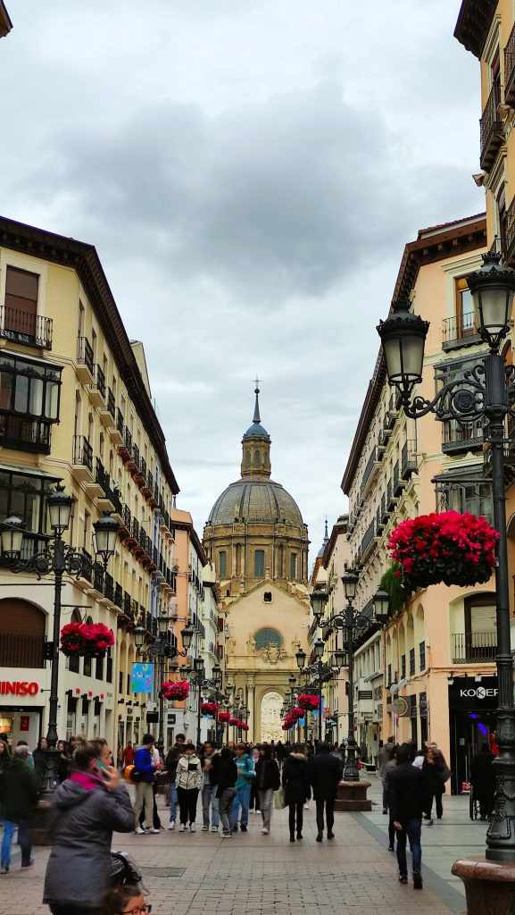 Caminar por la Calle Alfonso I es una experiencia en sí misma porque es, sin duda, la más icónica y elegante de Zaragoza. Sus edificios señoriales de finales del siglo XIX y su ambiente comercial os guiarán en línea recta hacia una imagen de postal. Al fondo, siempre presente, veréis la silueta de las cúpulas de la Basílica. Es el lugar perfecto para hacer esa foto perspectiva tan famosa antes de desembocar en la inmensa Plaza del Pilar.
