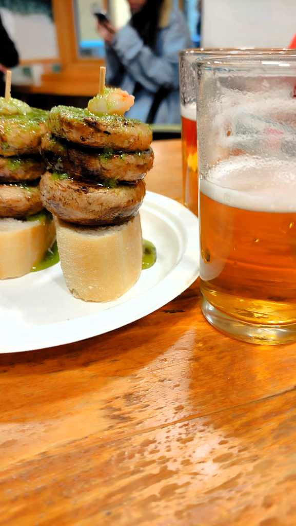 Este laberinto de callejuelas estrechas (principalmente las calles Libertad y Estébanes) es el alma de la ciudad, si vas a mediodía, el ambiente es algo más relajado y familiar, ideal si queréis saborear las tapas con un poco más de calma. Por la noche, la energía es eléctrica y se vive el auténtico bullicio zaragozano. El plan es vivir el ritual maño de ir de bar en bar, copa en mano, probando la especialidad de cada casa. Es ruidoso, es auténtico y, avisamos, ¡engancha muchísimo! Te dejamos la lista de lo que pudimos probar nosotros.