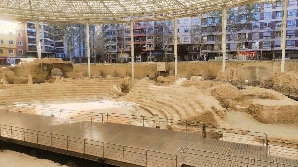 Caminando por el casco antiguo, de repente el suelo se abre para mostrarte el pasado romano de la ciudad que fue fundada por el mismísimo Augusto. Lo que hoy ves son las ruinas de un teatro que llegó a tener capacidad para 6.000 espectadores, convirtiéndose en uno de los más grandes de la Hispania romana. Lo más curioso es que estuvo oculto bajo edificios y viviendas durante siglos, hasta que unas obras en 1972 lo sacaron a la luz. Hoy, gracias a su gran pasarela y su museo, puedes caminar casi por el mismo escenario donde los antiguos zaragozanos disfrutaban de la comedia y el drama hace 2.000 años.