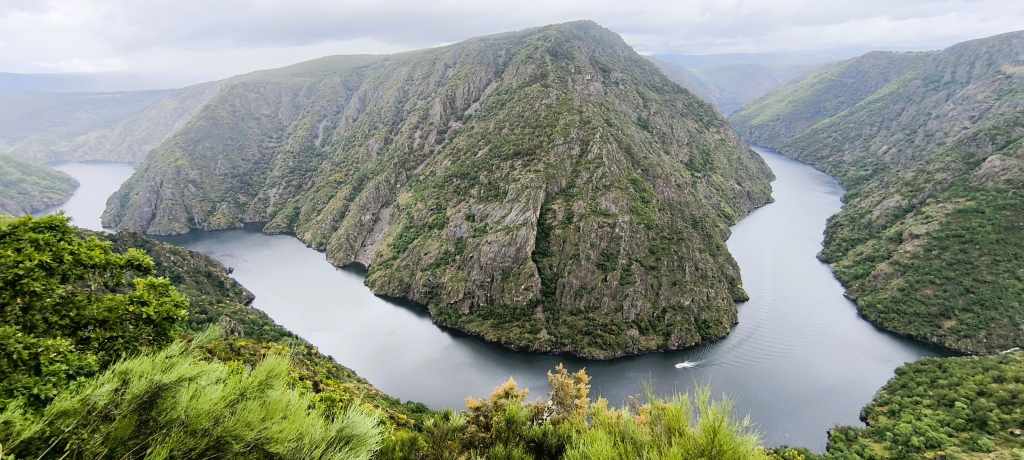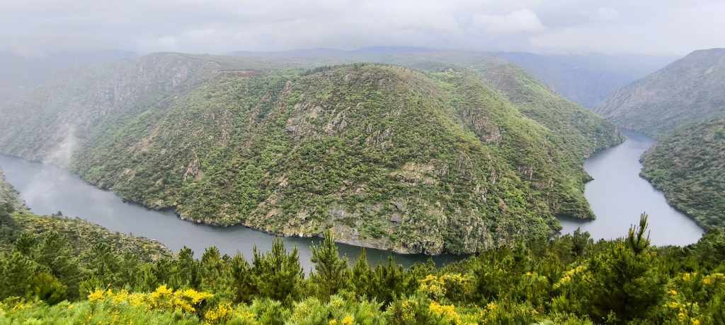 El Mirador de Pé do Home es brutal porque te sitúa en una posición elevada desde la que dominas gran parte del cauce. Te hace sentir pequeño ante la magnitud de la naturaleza gallega.