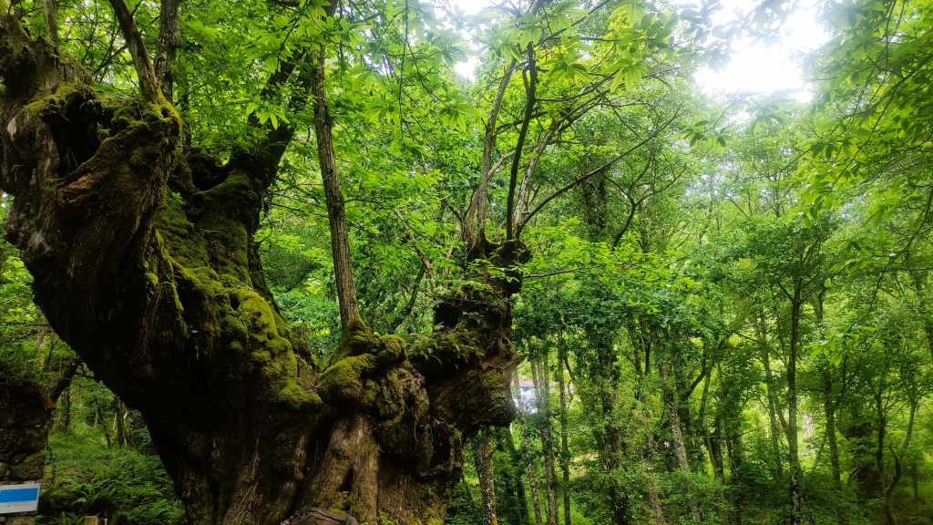 En la zona de Sober, visitamos los Castaños Milenarios. Son árboles gigantescos, retorcidos por los siglos, que parecen sacados de una película de fantasía. Caminar entre ellos te hace sentir una conexión muy especial con la tierra; es la Galicia más ancestral y auténtica, lejos de cualquier ruido moderno.