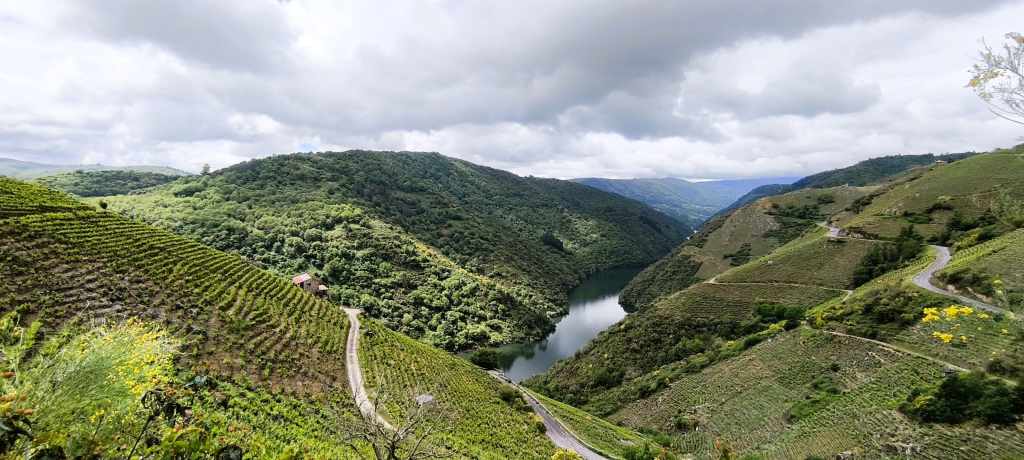 Justo al lado está el Miradoiro do Curral do Penso, que ofrece una perspectiva complementaria preciosa. Es el lugar perfecto para entender la «viticultura heroica», viendo los viñedos colgados de laderas imposibles. Si tienes suerte y hay un poco de bruma, la foto será de otro planeta. Es, sin duda, uno de los rincones más tranquilos para sentarse y, simplemente, dejar que el Sil te deje sin palabras.