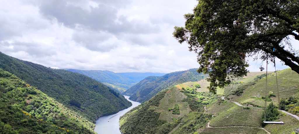 No se puede entender la Ribeira Sacra sin sus viñedos en pendientes imposibles. Nosotros lo teníamos claro y reservamos una experiencia en Adega Terra Brava, ¡y no pudimos salir más encantados! No es solo una bodega; es una inmersión total en la «viticultura heroica». Hicimos una cata de vinos deliciosa, y nos subimos a su famoso columpio. Imagínate balancearte sobre los viñedos con el cañón del Sil a tus pies. Es divertido, emocionante y las fotos son espectaculares. El trato en la bodega es súper cercano, te explican la viticultura heroica de tú a tú y te vas de allí sintiéndote parte de la familia.